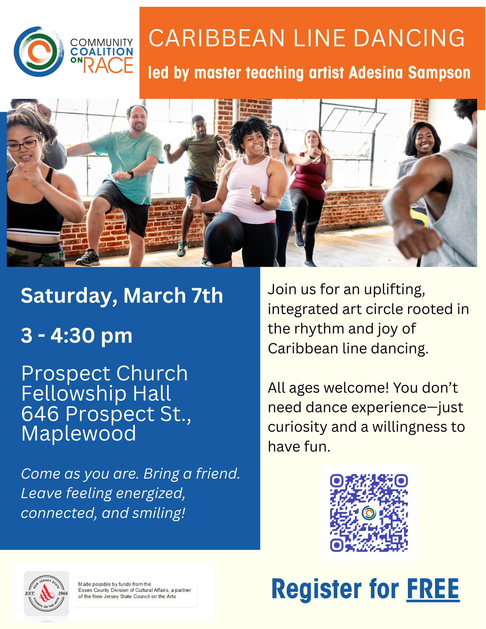 Move, laugh, and connect through joyful Caribbean rhythms in this free, all-ages dance experience. No experience needed—just come ready to have fun and be part of community. Register here today!